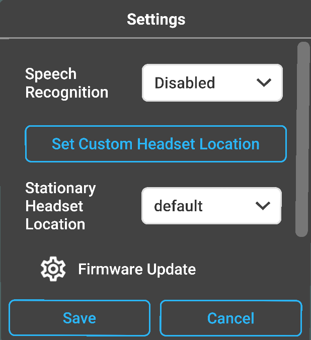 When a custom headset view is set, it is automatically enabled. The custom location is saved and available for selection the next time the application is in use.