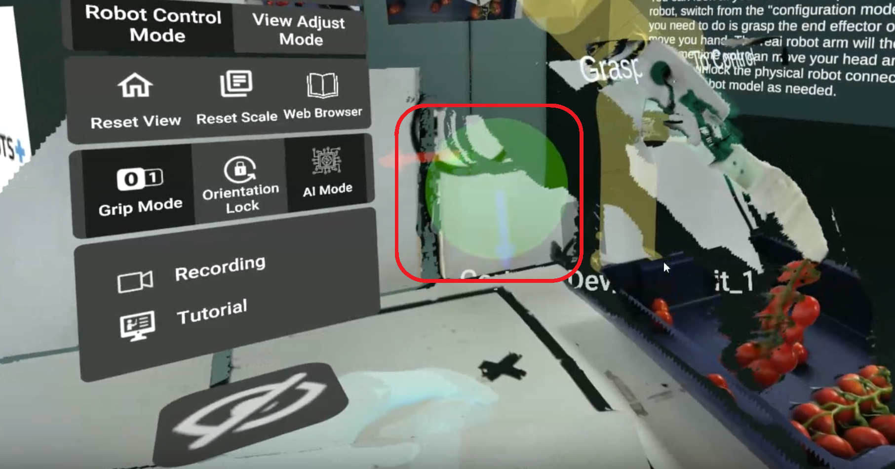 Model takes control during inferencing, but you can take control back anytime by interacting with the green orb, just like how you normally control the robot in AMAS.&#x20;