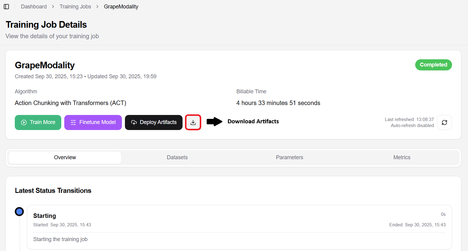 If you prefer to deploy the model elsewhere, click to download the model artifacts directly to your local machine.